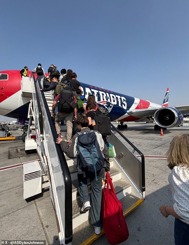 “Estadounidenses que abordan uno de los muchos vuelos chárter del Departamento de Estado que parten de Medio Oriente hacia Estados Unidos”, escribió Johnson en X. “Este avión aterrizó sano y salvo en Washington esta mañana”.