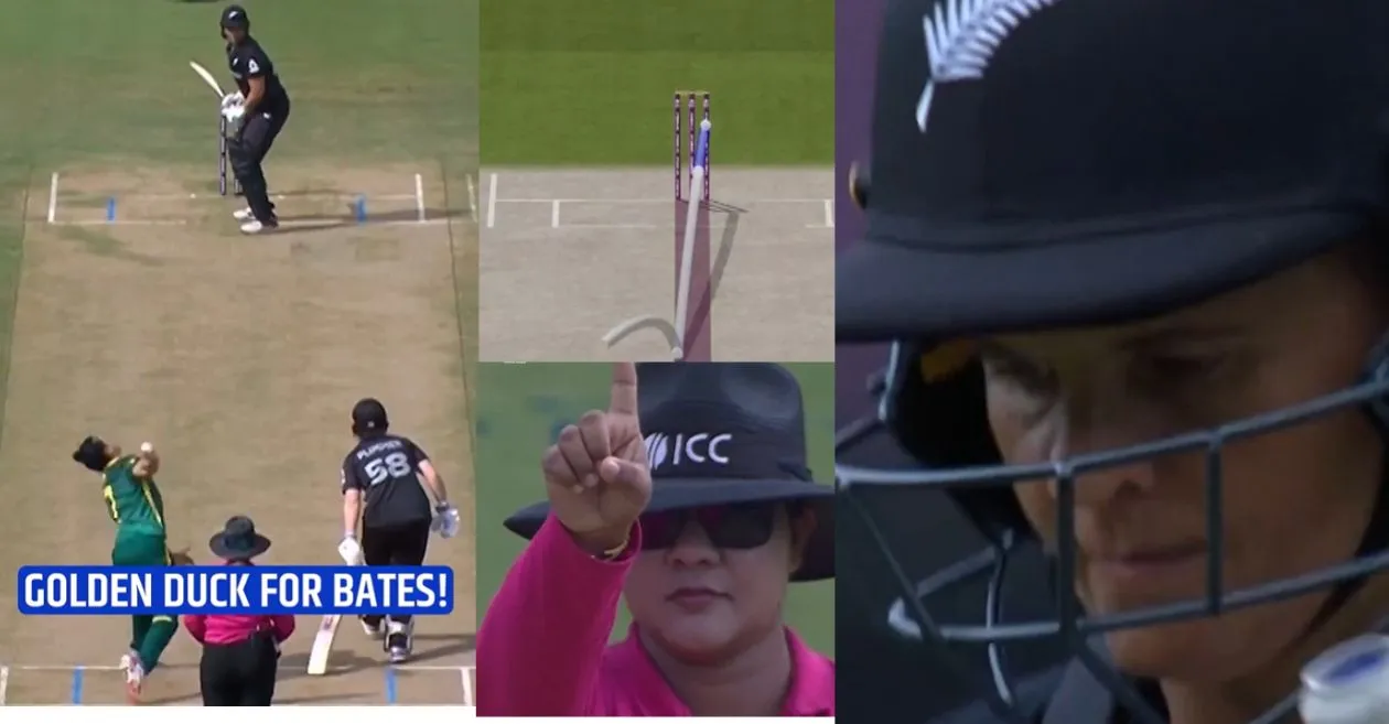 Sangre sudafricana Marizanne Kappp Ella proporcionó un sorprendente avance temprano para su equipo con una entrega perfectamente hecha, que rechazó a Bates al pato dorado. Cuando surgió la primera bola de Kappa Inns, Bates pasó por la arruga para jugarla, pero no golpeó, sin conectarse al bate. La pelota la golpeó en la almohadilla delantera, justo debajo del rollo de rodilla, saliendo de una curva amplia y manteniendo la línea alrededor del medio y el tronco de la pierna. El juez en el área reconoció a Bates Out LBW, la decisión de Bates se atrevió a desafiar la revisión.