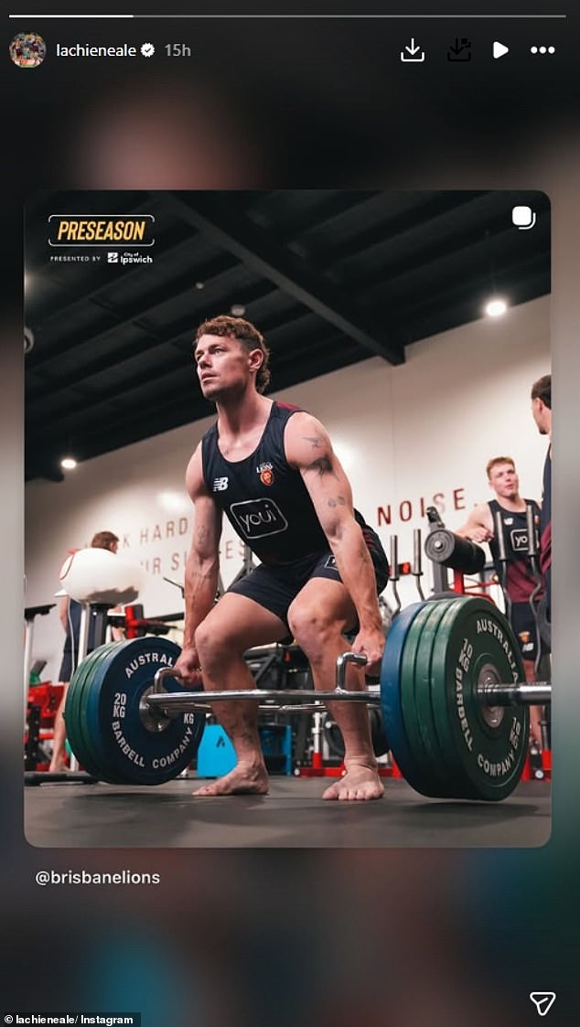 Neale publicó esta foto en el gimnasio, etiquetando a los Brisbane Lions mientras se preparan para la próxima temporada de la AFL.
