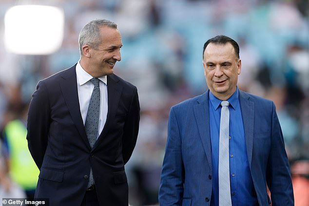 El presidente de la Comisión de la Liga Australiana de Rugby, Peter V’landys (derecha), confirmó que el martes se llevaron a cabo conversaciones positivas entre funcionarios de la NRL y algunos clubes de la Superliga (el director ejecutivo de la NRL, Andrew Abdo, en la foto de la izquierda).
