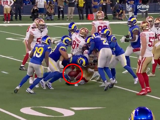 Los Rams de Los Ángeles piensan que deberían haber comenzado este regreso. Sin embargo, los jueces explotaron los silbatos temprano, citando detener el progreso hacia adelante y 49ers sosteniendo la pelota.