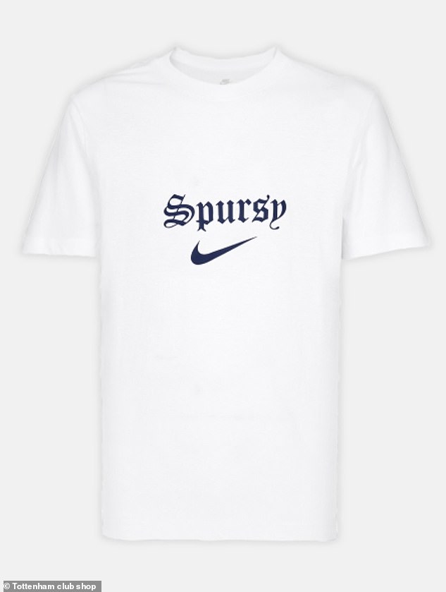 La camiseta blanca con la etiqueta “Spursy” y el logo de Nike se puede comprar en la tienda oficial del club por £30.