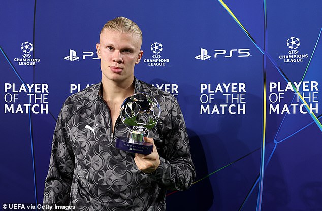 Erling Haaland, en la foto, con el premio del jugador en el partido, no pudo esconder su furia después de que Mónaco llegó dos veces en la parte de atrás para tirar de 2-2 con su equipo Manchester City el miércoles
