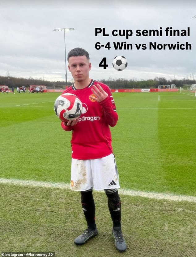 Kai Rooney continuó su impresionante carrera en el Man United, anotando cuatro goles contra el Norwich U16.
