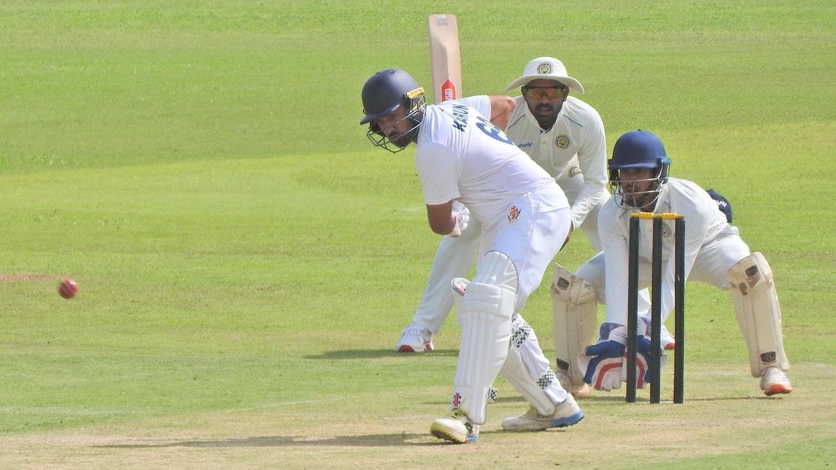 El recuento de tres dígitos marca el número 25 de Karuna en cricket de primera clase y se produce después de que el bateador de orden medio quedara fuera del equipo de prueba indio para la serie de prueba de dos partidos recientemente concluida contra las Indias Occidentales.