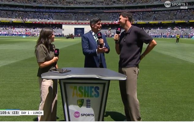Becky Ives, Sir Alastair Cook y Steven Finn presentaron la cobertura de la pausa para el almuerzo en TNT Sports: el locutor en el primer día del programa Ashes enfrentó muchas críticas.