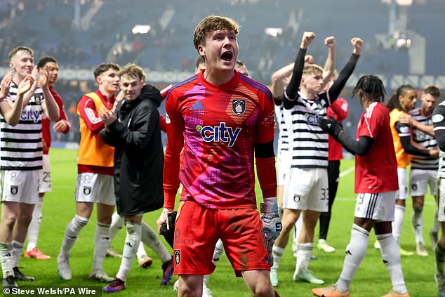 El portero Calum Ferrie encabezó las celebraciones en Queen’s Park, Ibrox, en febrero del año pasado.