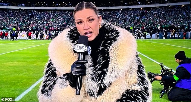 Erin Andrews sorprendió a los fanáticos de la NFL cuando apareció en pantalla con un enorme abrigo de piel