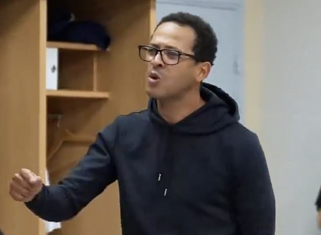 Imágenes del potencial nuevo entrenador del Chelsea, Liam Rosenior, dando un discurso del equipo en línea tras la sorprendente salida de Enzo Maresca de Stamford Bridge el jueves.