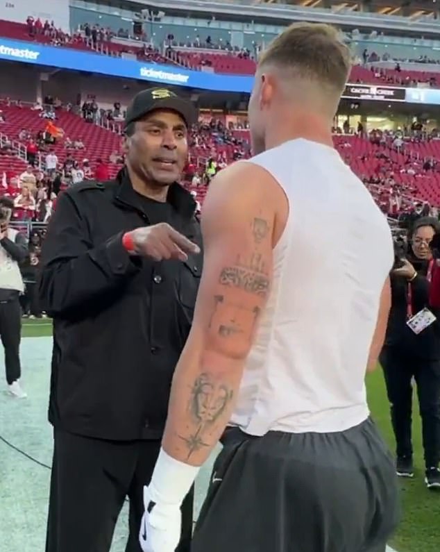 Antes de que los Niners se enfrentaran a los Carolina Panthers, las cámaras capturaron a un hombre abrazando a la estrella de San Francisco mientras apoyaba a Christian McCaffrey.