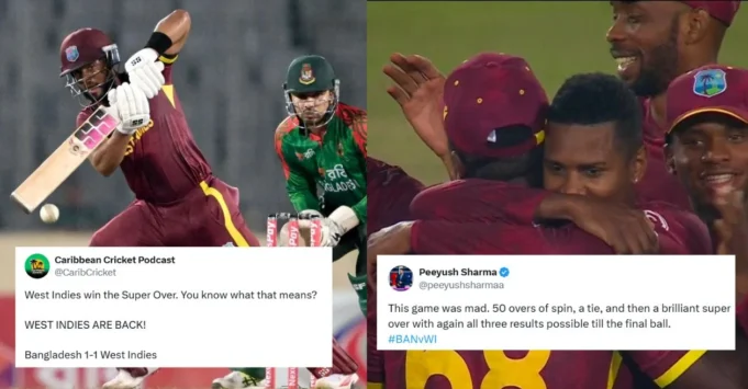 West Indies gana el Super Over y nivela la serie 1-1 #Cricket #BANvsWI #westindiescricket pic.twitter.com/DWhUnRDYKo