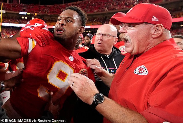 Luego se vio al extremo de los Chiefs con sangre saliendo de su nariz mientras lo arrastraban lejos de la pelea. Más tarde se le vio tapándose la cara con una toalla mientras se dirigía al vestuario para recibir tratamiento.