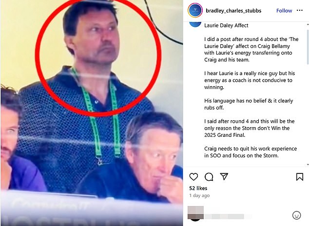 Stubbs publicó una foto de Daley después de Bellamy y dijo que perdió por “Laurie Daley Afect”