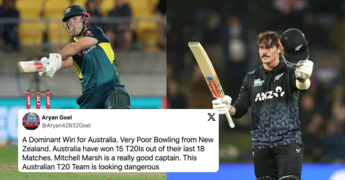 La victoria dominante en Australia. Bolos muy débiles de Nueva Zelanda. Australia ganó 15 T20I de los últimos 18 partidos. Mitchell Marsh es un muy buen capitán. Este equipo T20 australiano se ve peligroso pic.twitter.com/fs1y9si4dn