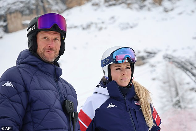 Según se informa, el entrenador de Vonn, Aksel Lund Svindal (izquierda), observó cómo la mujer de 41 años intentaba ponerse al día manteniendo su rodilla sana en los días previos al horrible accidente del domingo.