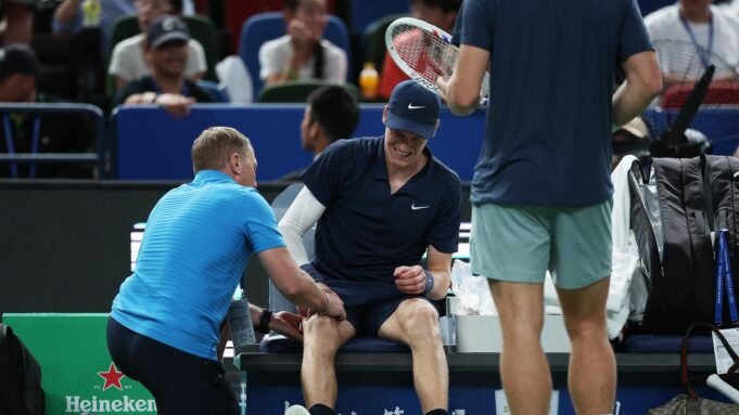 El maestro defensor Jannik Sinner se retiró de Shanghai Masters el domingo después de su lesión en la pierna en el partido de la tercera ronda con Tallon Griekspoor en los Países Bajos.