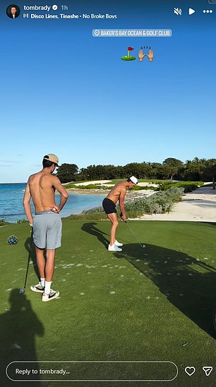 La leyenda de la NFL compartió imágenes en Instagram del dúo de padre e hijo jugando en el campo del lujoso Bakers Bay Golf and Ocean Club en las Bahamas.