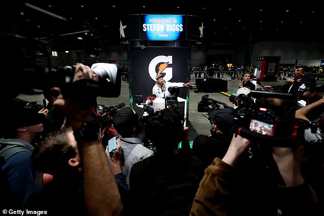 Stefon Diggs fue uno de los jugadores cubiertos por los medios durante la noche inaugural del Super Bowl del lunes por la noche.