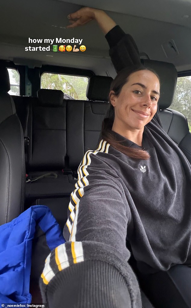 Fox comienza su historia con una foto de ella luciendo feliz y lista para aprovechar el día en su auto, con la leyenda “Cómo empezó mi lunes”.