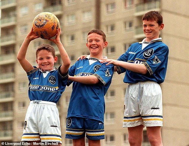 John Rooney (izquierda) creció jugando al fútbol con el ex capitán del Manchester United e Inglaterra (derecha) con su hermano mediano Graham (centro) afuera de la casa familiar en Croxteth.