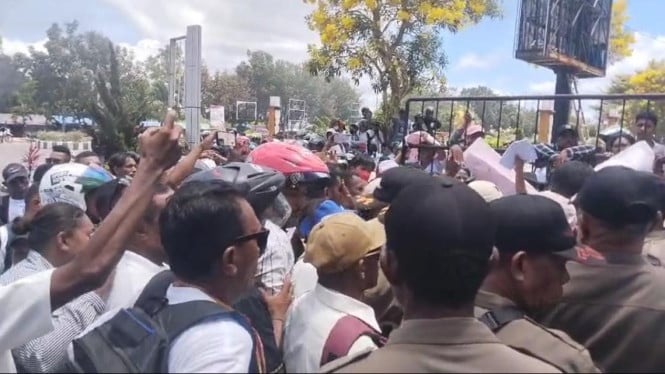 Fueron a Bersark cuando tomaron medidas frente a la oficina del Regente de las Islas Tamnibar, Maluku y la oficina de DPRD. Están decepcionados porque hasta ahora no han sido contratados como empleados del gobierno con un acuerdo laboral o PPK, por parte, PPK.