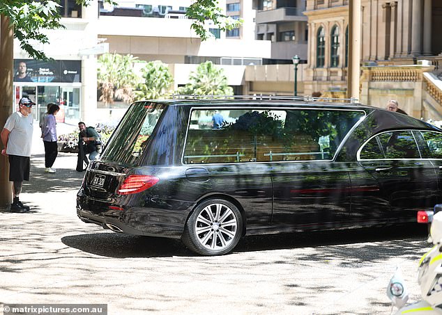 Se ve un coche fúnebre que transporta el ataúd de John Laws llegando a la Catedral Anglicana de St Andrews antes de su funeral el miércoles.