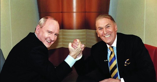 Alan Jones (izquierda) rindió homenaje a su antiguo rival John Laws (derecha) el lunes. La pareja fue fotografiada durante su larga competencia de radio talkback.