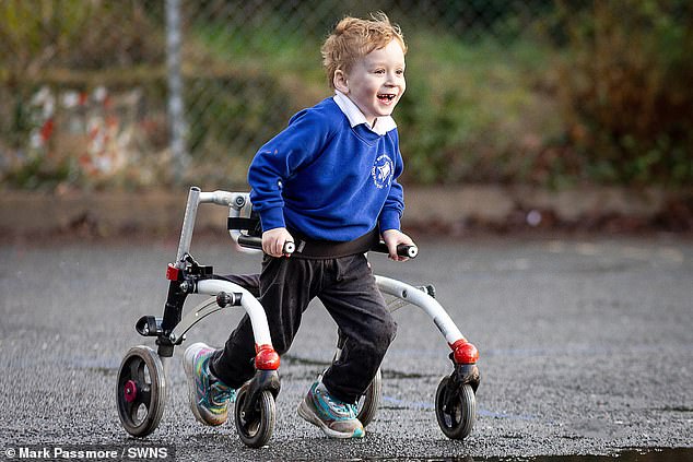 Jacob Fallows, de cuatro años, corrió más de 100 millas en enero para recaudar fondos para la parálisis cerebral y su escuela.