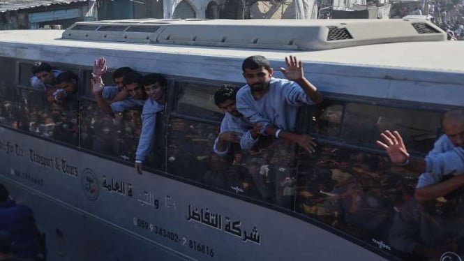 La Oficina de Prensa de Prisioneros Palestinos también comenzó a liberar a los prisioneros palestinos el lunes y los autobuses que los transportaban salieron de las cárceles israelíes hacia Gaza y Cisjordania.