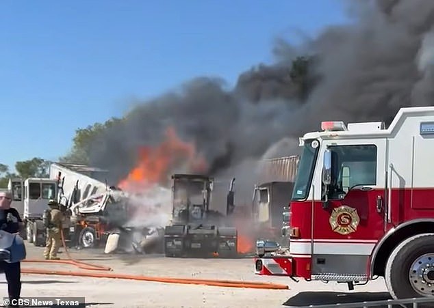 El Departamento de Bomberos de Fort Worth atacó una serie de camiones y remolques de 18 ruedas a la 1:30 p. m. del domingo por la tarde.