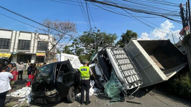 “Entonces el camión saltó al divisor de la carretera de peaje y salió del callejón desde el costado de la arteria Kaligandu”, dijo Dedi.