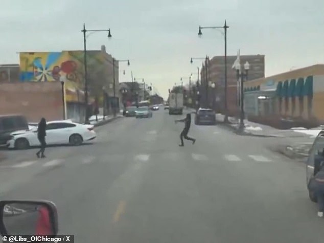 Se escucharon disparos cuando un transeúnte pareció esconderse detrás de la puerta de su auto, un testimonio de cuán común se ha vuelto la violencia en la ciudad gobernada por los demócratas.
