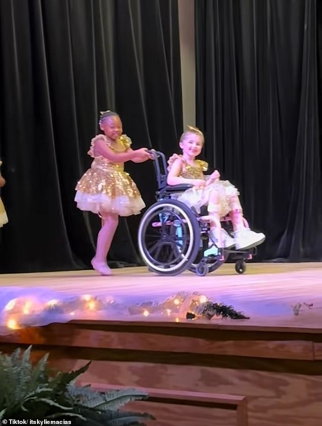 Macías, la madre de Morrie, llamó a las parejas de baile de su hija “chicas dulces” y dijo que Raelynn estaba radiante de emoción por empujar la silla de ruedas.
