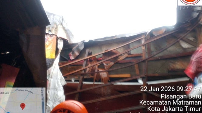 Yakarta, Wiwa – La casa de un residente de la aldea de Pisangan Baru en Matraman se derrumbó repentinamente cuando cayeron fuertes lluvias en el este de Yakarta el jueves 22 de enero de 2026 por la mañana.