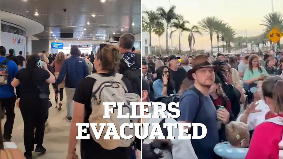 Multitudes de viajeros aterrorizados fueron evacuados del Aeropuerto Internacional de Miami el domingo por la noche debido a un “problema de seguridad” en medio del caos en los viajes causado por la tormenta invernal Fern.