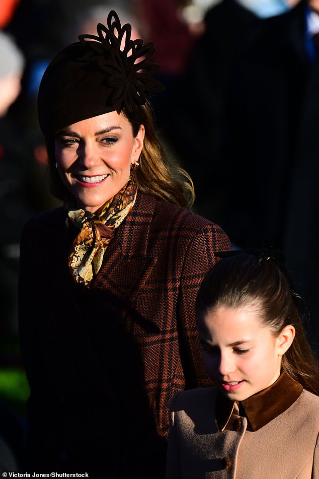 Kate mostró una amplia sonrisa cuando llegó a Sandringham con la princesa Charlotte, de 10 años.