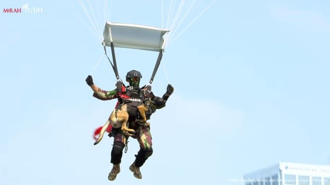 Bajaron y bajaron, y luego continuaron con las fuerzas de Srikandi con los soldados TNI femeninos. Cuando aterrizaron, nadie salió del área de aterrizaje.