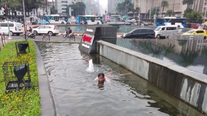Yakarta, Vira – La impactante escena tuvo lugar en el área icónica de la estatua de caballos casados de Arjuna en el centro de Yakarta, el martes 23 de septiembre de 2025.