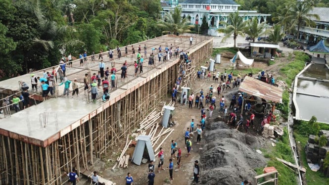 Yakarta, Vira – La tradición de que los estudiantes participen en el servicio comunitario o Ron en la construcción de internados islámicos está en público después del colapso de una sala de oración de tres pisos en el internado islámico, Buduran, Sidorzo, Java Oriental.