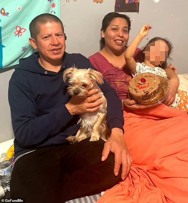 Pablo Criollo, de 45 años, fue asesinado a tiros por una flecha mientras caminaba a casa desde el trabajo el sábado. Aparece en la foto con Paula Amez, su esposa y su hija.
