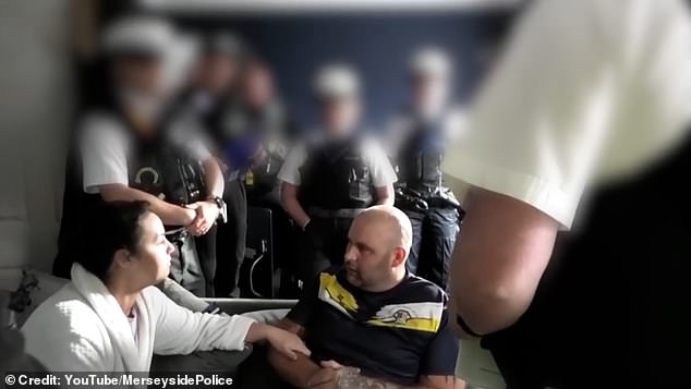 Las imágenes de la cámara corporal de la policía publicadas por la policía de Merseyside muestran el momento en que llegaron los agentes para arrestar a Steven Naylor en su casa en St Helens. Naylor y su esposa Lisa siguen fingiendo que tiene una lesión cerebral grave