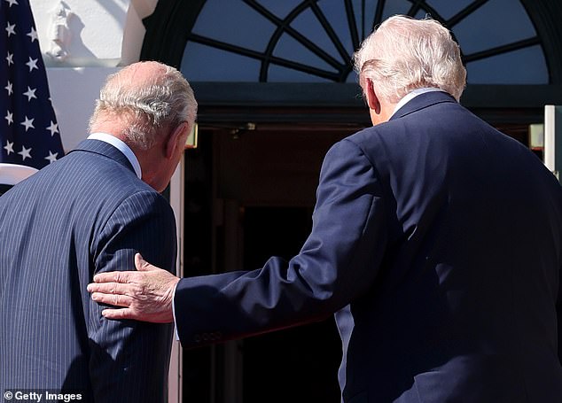 Trump también hizo una exhibición conmovedora cuando se reunió con el rey Carlos en Londres el año pasado.
