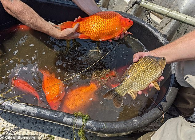 Después de que los lugareños arrojaron su pescado mascota, el lago de la ciudad de Minnesota se hundió con la transformación de peces dorados.