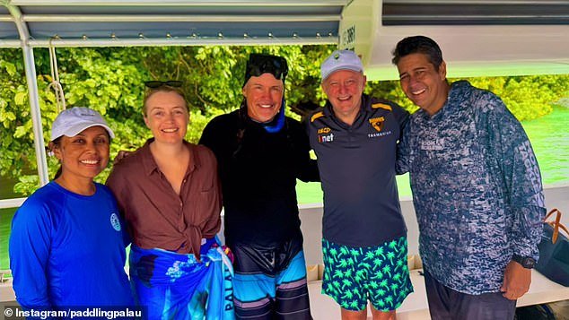 “El presidente Surangel Whipps Jr y la primera dama Valerie Whipps se unen al primer ministro australiano Anthony Albanese y su prometida Jodie para una aventura de remo en Palau”, dijo el Post el jueves.