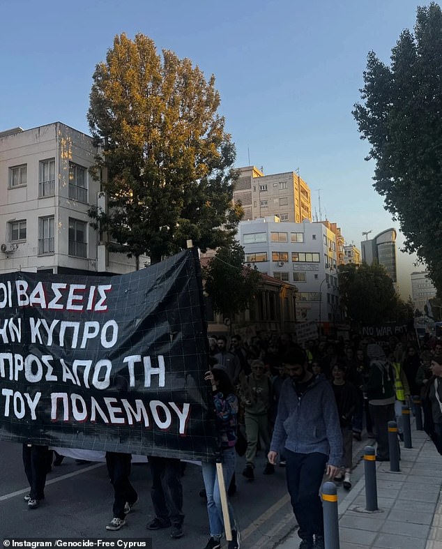 En una declaración publicada antes de la marcha, la coalición argumentó que la presencia de bases militares en el sur y sureste de Chipre (Akrotiri y Dhekelia) obligó efectivamente al país a utilizarlas como “plataforma de lanzamiento para la guerra”.