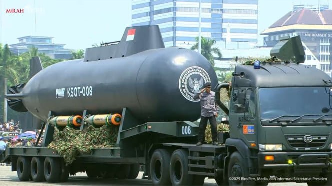 Yakarta, Vira -El máximo ceremonia del 80 aniversario del Ejército Nacional de Indonesia (TNI) en el Monumento Nacional (Monas) en Octocad Yakarta (Monas) se ha convertido en un lugar para mostrar el último equipo defensor el domingo 5 de octubre de 2025. De una fila de vehículos de combate, apareció la atención pública también fue una mierda de la cantidad de submarino humanitario, una tecnología autónoma llamada Ksot-1008.