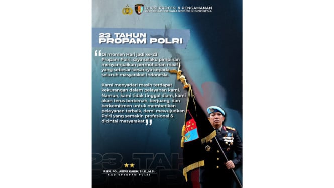 Jacarta – La División Profesional y de Seguridad (Propam) de la Policía de la República de Indonesia (Polri) celebrará su 23º aniversario el 17 de octubre de 2025.
