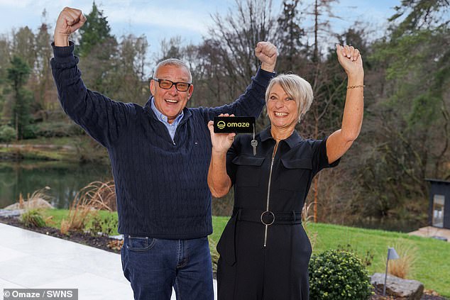 Nicola Dickinson, de 59 años, fotografiada con su esposo Martin, se convirtió instantáneamente en multimillonaria cuando ganó la mansión de £ 4,5 millones.
