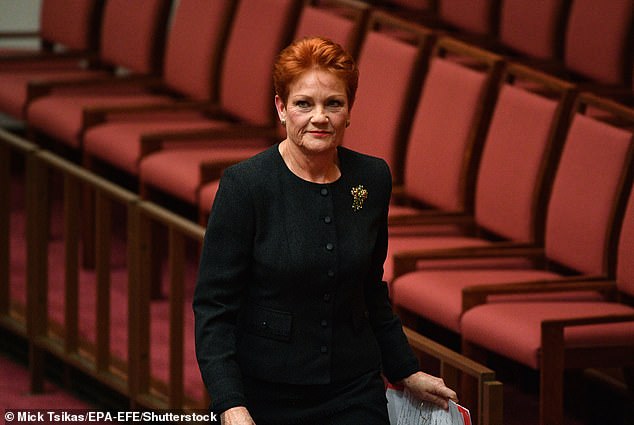 Hanson (en la foto) fue suspendido del Senado con un burka en el suelo.