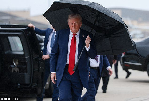 Se dirigió a los periodistas antes de abordar el avión en la Base Conjunta Andrews en Maryland, mientras permanecía bajo un paraguas y se movía continuamente en el aire.